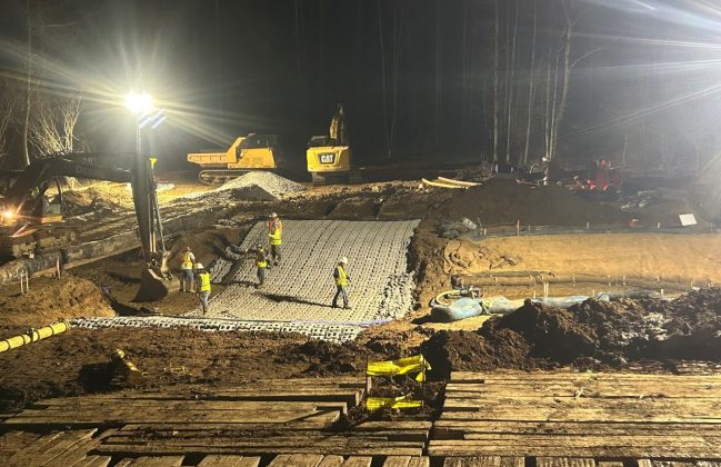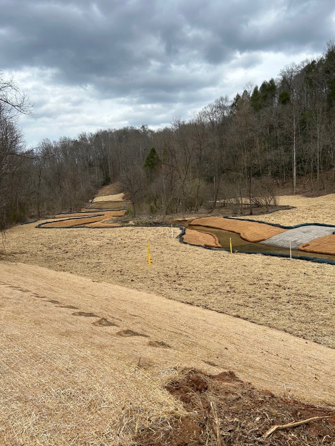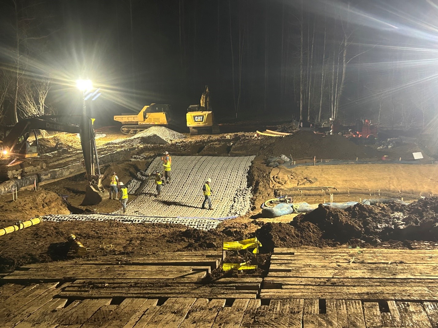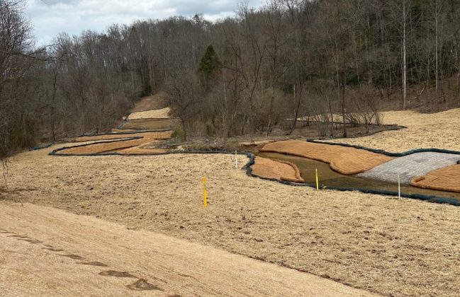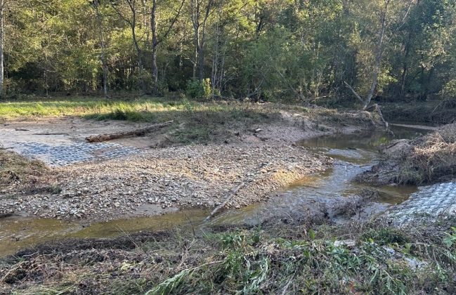 The project involved the abandonment of a section of exposed natural gas pipeline in Cane Creek, near Old Fort, McDowell County, North Carolina. A new permanent easement was established which crossed Cane Creek and a low water crossing, utilizing Armor-Flex concrete block mat was installed to provide access for maintenance vehicles. The remainder of the creek bank where the abandoned gas line had been exposed was restored to a stabilize the creek banks.