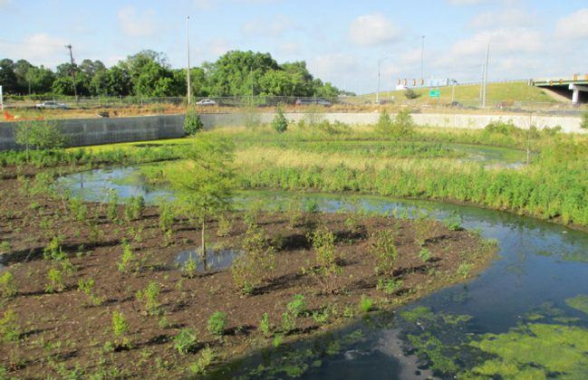 For centuries, Genetta Ditch formed a large, sinuous drainage channel within the urban landscape of southern Montgomery, Alabama. In the 1960’s, a portion of the ditch was converted to a concrete channel to coincide with the construction of Interstate 65. Recent developments in urban stormwater management, however, required improvement of the ecological function of this reach. While the concrete channel conveyed stormwater flows, it did not contribute to water quality or aquatic habitat. There was also deterioration of the concrete channel especially at its terminus.
