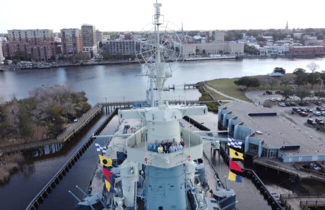 To support refurbishing efforts with the USS NC Battleship, S&ME worked with the design team, Battleship partners, and the North Carolina Department of Natural and Cultural Resources (NCDNCR). Work included design and construction of a cofferdam surrounding the ship, construction of a new memorial walkway that surrounds the ship, and then the use of the cofferdam to lower the water around the ship to replace the hull. The last portion of the project was removal of the mast and refurbishing it with new paint.