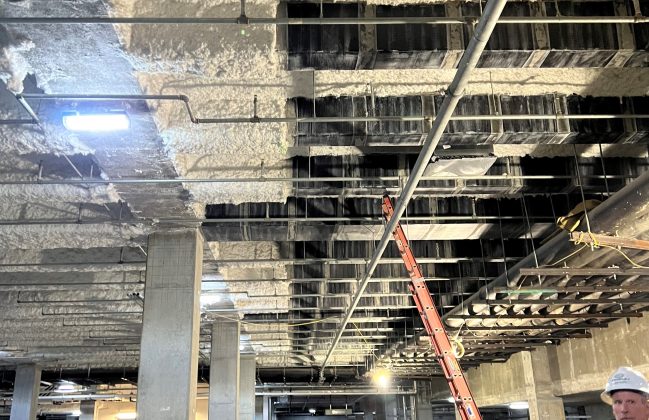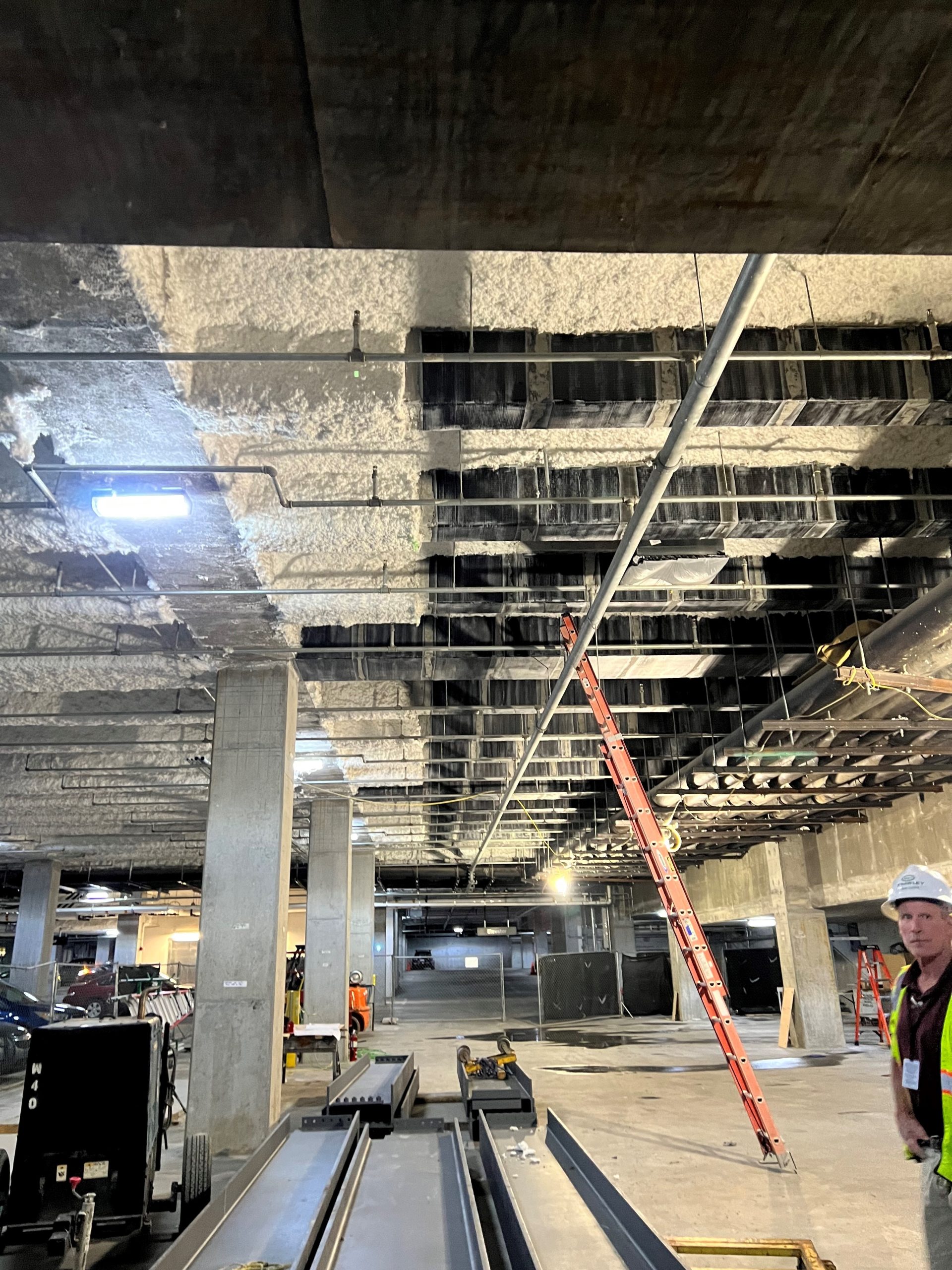 We were retained by the North Carolina Department of Natural & Cultural Resources to provide construction materials testing and special inspections for the project. Our services included construction observation and special inspections of a carbon fiber reinforced polymer (FRP) composite system applied to the beams of the first-floor framing. The purpose of the composite system is to strengthen the concrete beams. The strengthened beams, combined with additional structural steel framing is necessary to support the weight of the Dueling Dinosaur Laboratory Exhibit. As construction progressed, our scope of services included the evaluation of foundation bearing grades, the placement of concrete reinforcing steel, sampling and testing fresh concrete, and non-destructive testing of bolted and welded connections of the structural steel framing