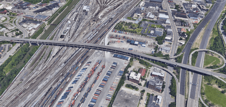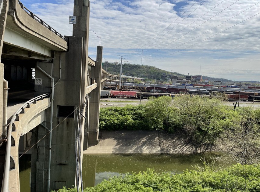 Western Hills Viaduct over the Queensgate CSX Rail Yard and Mill Creek