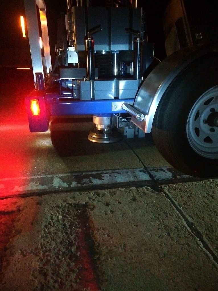 S&ME conducted tests in the outside wheel path in the outer-most right through lane of the roadway at every 3-4th concrete slab joint to obtain 140-150 data points per section. S&ME utilized its Dynatest FastFWD because the testing procedure included two seating drops followed by two loading drops targeting 82.1 psi contact pressure under the FWD plate, or approximately 9,000 lb. impact load in the center of the FWD plate. We utilized two FWD geophones located at 0 and 12 inches from the center of the FWD plate as the center of the FWD load plate was located on the approach concrete slab, at 6” away from the tested joint location.